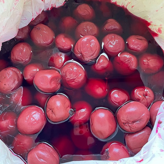 1ヶ月以上、赤紫蘇に漬かった梅。