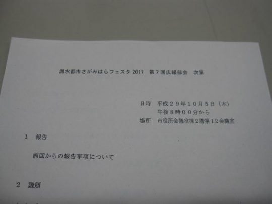 昨夜は潤水都市さがみはらフェスタ2017 第7回広報部会の会議。